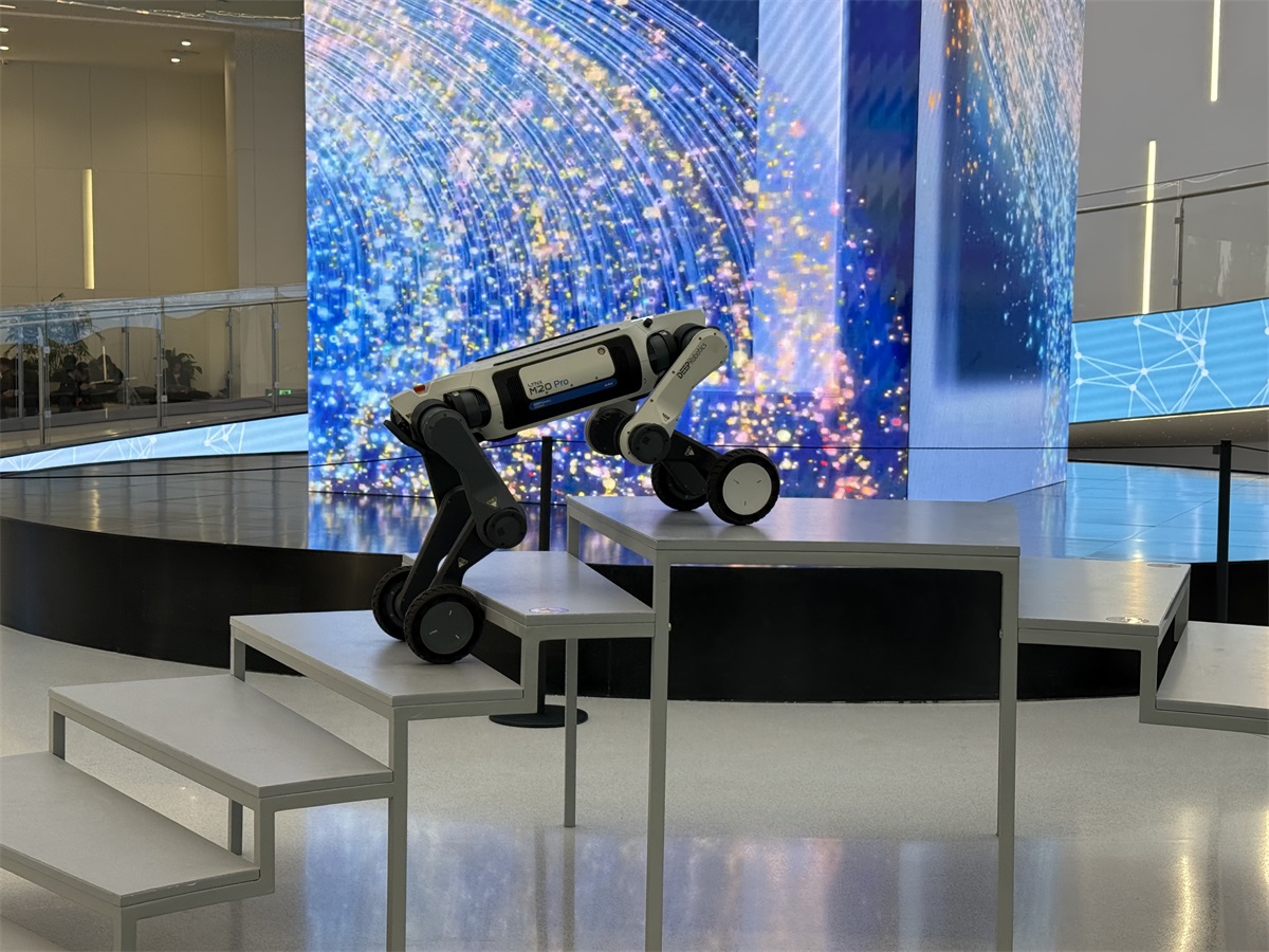 在世界互联网大会“互联网之光”博览会现场,云深处科技明星产品——山猫M20轮足机器人引发围观体验热潮。